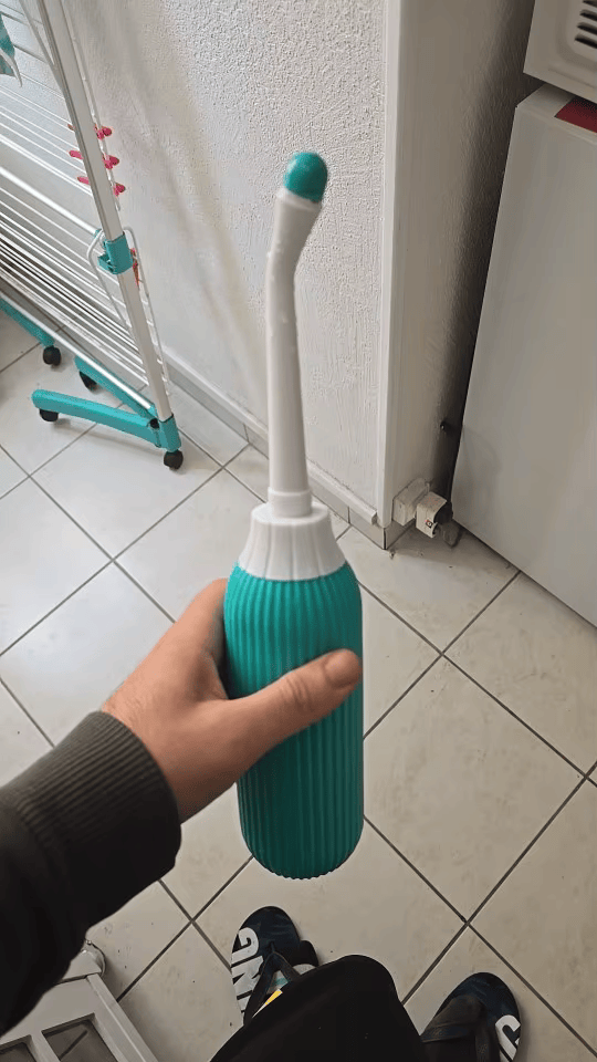 Ergonomic nozzle angle for easy reach and thorough cleansing from any position.